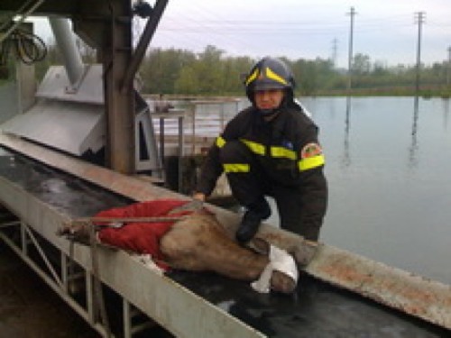 Per soccorrere l'animale intervengono i vigili del fuoco di Inveruno e di Milano