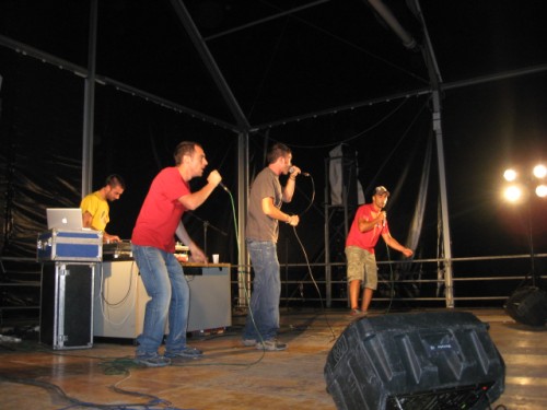 varesino Elio, Matteo e Para, accompagnati dai piatti di Dj Drugo hanno “screcciato” per circa un’ora proponendo al pubblico pezzi inediti. Tra questi anche “Stanotte”, il brano scritto per “Il passato è una terra straniera”, film di Vicari (tratto dal romanzo di Carofiglio) che vede Elio Germano nei panni di protagonista e che è stato proiettato prima dell’esibizione del gruppo. «E’ un brano che abbiamo scritto per il film e che ne racconta la trama» spiega l’attore. I lavori del gruppo sembrano nascere dalla voglia di confrontarsi con la realtà, tanto che il loro ultimo disco autoprodotto si intitola “Precariato” con pezzi «arrabbiati», come specifica Germano, o dalla voglia di raccontare le proprie radici, città, vite. Lo stesso nome del gruppo porta in se il ricordo di un recente passato: «Il nonno di Elio e Matteo quando li vedeva giocare per il paese li chiamava così e abbiamo deciso di tenere quel nome» mi dice Para. Ed è proprio così. I quattro ragazzi si raccontano con semplicità, così come sono, star comprese.