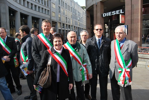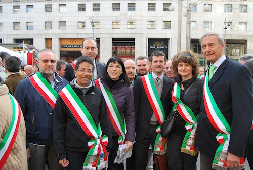 In testa il sindaco di Varese Attilio Fontana, promotore della manifestazione in quanto presidente di Anci Lombardia, che di fronte alla risposta data dai sindaci lombardi a un problema così grave per le amministrazioni comunali si è detto «orgoglioso di essere un sindaco lombardo».