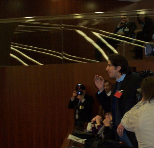 Ore 11.16: Mentre il presidente Abelli dà l’esito della prima votazione, irrompe in aula nella sezione stampa il leader dei radicali Marco Cappato (foto). "Questo consiglio è eletto illegalmente" urla, mentre viene accompagnato fuori dai commessi. I Radicali hanno organizzato davanti al Pirellone un sit in per protestare contro la raccolta di firme.