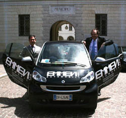 Nel frattempo sindaco, assessori e dirigenti hanno utilizzato le loro auto private o le utilitarie di servizio: qualche tempo fa è stato chiesto ai concessionari della città di fornire gratuitamente all’Amministrazione vetture aziendali con le scritte pubblicitarie del caso, in modo da poter avviare una collaborazione virtuosa che da una parte permette un risparmio di risorse pubbliche, dall’altra rappresenta un’efficace modalità di pubblicizzazione della marca e del rivenditore. Il titolare della Emmevi Automobili spa, Alessandro Marino, ha accolto con entusiasmo l’invito, nell’ambito di una sinergia già avviata a sostegno delle attività culturali dell’Amministrazione, e ha fornito un’utilitaria molto comoda per viaggiare in città, che per di più dimostra una grande attenzione nei confronti dell’ambiente. La Smart Fortwo MHD è infatti la vettura con la più bassa emissione di anidride carbonica prodotta al mondo.