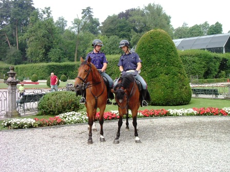 Li abbiamo visti pattugliare i Giardini Estensi durante il G6 e al Ministro Maroni la bucolica immagine deve essere piaciuta talmente tanto che da Roma, per i mesi di luglio e agosto, è arrivato un distaccamento del reparto ippomontato del Dipartimento della Sicurezza della Polizia di Stato. Noto e Him, i due purosangue di sella italiana rispettivamente di sette e undici anni, e i loro cavalieri, dal primo luglio stanno dunque pattugliando alcune zone della città particolarmente adatte, ossia il Sacro Monte, il lungolago, i parchi della città.