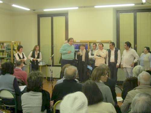 museo del Tessile, del film “I cento passi” di Marco Tullio Giordana con Luigi Lo Cascio, Luigi Maria Burruano, Tony Sperandeo, Paolo Briguglia (Italia, 2000). U film che a milioni di italiani ha fatto scoprire la forza di questo siciliano dall’animo schietto, cresciuto in una famiglia e in un paese segnati dalla mafiosità, e che a quel sistema si è rivoltato. Non a caso è stato ricordato con l’impegno del gruppo psicosociale, lui che si scoprì improvvisamente sano di mente in una società malata. E col tempo sta rendendo contagiosa quella sua sanità. Lo spettacolo proposto in biblioteca nasceva infatti all’interno dei gruppi riabilitativi a carattere espressivo: come spiegava l’educatrice Sara Boninsegna, è infatti importante anche questo strumento, in questo caso utilizzato per una riflessione importante su temi sociali.