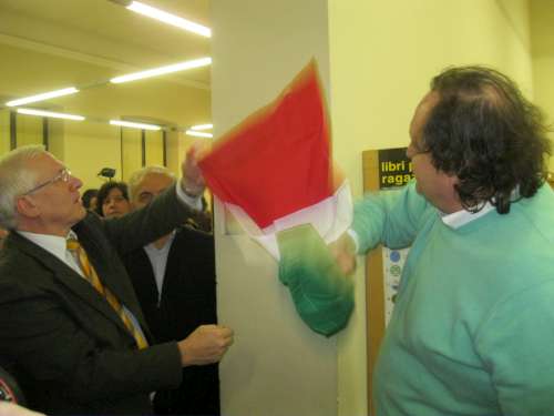 Per l’intitolazione odierna, cui non poteva mancare la direttrice della biblioteca, Loredana Vaccani,