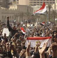 Grande gioia fra i manifestanti che da giorni affollano piazza Tahir: fischi per Mubarak, un tripudio di bandiere egiziane per l’Egitto.