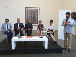 «Una novità assoluta nel campo della formazione in Italia – spiega la direttrice Emma Zanella– poiché per la prima volta un Museo accoglie al suo interno un corso universitario con lezioni teoriche e pratiche svolte a stretto contatto con lo staff e la vita gestionale del museo». Il corso dedicato alla “Didattica per il Museo” nasce dalla punta di diamante della galleria, il settore didattico appunto, che dal 1998, propone laboratori per adulti e bambini coinvolgendo ogni anno migliaia di persone. Un’impresa molto impegnativa che vedrà anche la collaborazione di professionisti esterni quali il critico d’arte Tommaso Trini, l’architetto Darko Pandakovic e il professore dell’Accademia di Brera Antonio Caronia.(nella foto: Salvatore Amura, direttore dell’Accademia Aldo Galli di Como, Angelo Crespi, Presidente della Fondazione Silvio Zanella, Edoardo Guenzani, Sindaco di Gallarate, Emma Zanella, Direttrice del Maga, Francesca Consonni, direttrice del dipartimento didattico, Alessandro Castiglioni, coordinatore del corso).