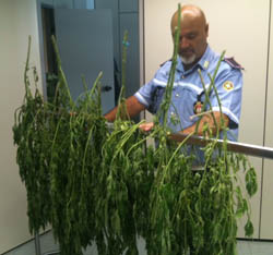 Una piantagione di marijuana a due passi dal carcere di Busto Arsizio, nascosta tra piante di di spezie, forse per attutirne l’odore, è stata scoperta dalla Polizia Locale di Busto Arsizio. Una ventina gli arbusti, alti circa un metro e mezzo, pronti a fiorire visto il periodo estivo, scovati all’interno dell’appezzamento di terreno di un 45enne già noto alle forze dell’ordine per fatti analoghi. L’uomo, rintracciato dagli agenti bustocchi, in casa conservava altre 39 piante che stavano essiccando, un bilancino di precisione e due pipe per fumarla. Il proprietario della piantagione ha dichiarato agl agenti di coltivarla per uso personale e terapeutico, essendo affetto da una grave malattia debilitante, ma anche di rifornire a titolo gratuito qualche amico. L’uomo è stato arrestato per detenzione e spaccio di sostanze stupefacenti ma subito scarcerato su ordine della Procura della repubblica di Busto Arsizio per motivi di salute