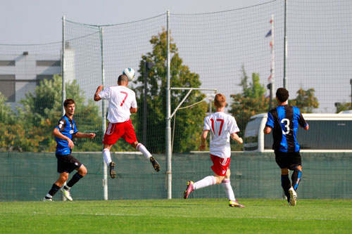 All’11’ i biancorossi servono il bis: Jadilson crossa corto dalla bandierina sinistra per Ferreira che, in qualche modo, prolunga sul secondo dove Lazaar è tutto solo e deve solo spingere in rete il punto del 2-0 col piattone destro. L’Atalanta accusa il colpo e rischia di subire il terzo gol un minuto più tardi, quando Lazaar, in cavalcata a sinistra, pennella al centro per la testa di Rivaldinho Ferreira che impatta bene ma manda appena sopra la traversa. I padroni di casa ci mettono un po’ a reagire e riescono a farlo grazie al contributo di Grassi, interessante mezzapunta ’95: al 28′ il suo tiro al volo su sponda di Magnaghi è da applausi, tanto quanto la risposta di Milan che si allunga e toglie la palla