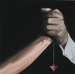 Ecco allora che il quotidiano è per Elena Colombo il terreno dei suoi nuovi percorsi, fatti dai volti, dai gesti sincopati indotti dal Tango, dai frammenti di corporeità dati dagli abbracci. Particolari di vita nella quale è riconoscibile un vissuto, fatto anche di desideri, di nostalgie del tempo appena sfiorato e recuperato nella trasparenza dei fondi, nella precarietà dei fogli di diario sparsi sulla superficie della rappresentazione, nella sovrapponibilità cromatica di una texture.