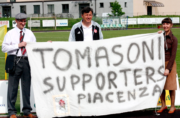 A portarlo in giro per l’Italia sono Elena e Francesco, tifosi numero 1 di Paolo Tomasoni: «Quando arrivò a Piacenza ci diede subito l’impressione di essere un giocatore "anomalo", sensibile, particolare – racconta Francesco – avevamo circa 20 anni sia noi che lui e io e Elena percepimmo una persona diversa, migliore. A questo si aggiungevano le sue caratteristiche da calciatore: innanzitutto aveva un sinistro molto potente, alla Mihajlović per intenderci; e poi era uno di quei giocatori che venivano definiti "jolly" e che emozionano per la loro capacità di ricoprire tanti ruoli per aiutare la squadra. Così, di fatto 30 anni fa, fondammo il Tomasoni Supporters Piacenza».