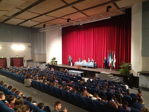 Una mattinata dedicata agli alunni delle classi quinta elementare quella che si è tenuta oggi, venerdì 5 ottobre, al Teatro Apollonio di Piazza Repubblica. L’occasione è stata la consegna ai 560 bambini della Costituzione Italiana e dello Statuto d’Autonomia. Un’iniziativa, organizzata dal Consiglio regionale della Lombardia, in collaborazione con Anci (nell’ambito delle iniziative di celebrazione dei 150 anni dell’Unità d’Italia), che sta facendo tappa in diversi capoluoghi e che ha coinvolto anche gli alunni varesini. Accolti dal saluto del Sindaco Attilio Fontana infatti, i bambini hanno riempito le poltrone del teatro varesino ascoltando e applaudendo le diverse autorità che sono intervenute durante la mattina. «È una mattina importante per voi – ha spiegato il Primo Cittadino -. La consegna delle Costituzione e dello Statuto d’Autonomia è un gesto importante perché vi si consegna le leggi su cui è basata la nostra società». «Conoscere la costituzione per conoscere i propri diritti e i proprio doveri – ha continuato Fabrizio Cecchetti, Presidente del Consiglio Regionale della Lombardia -. Questi sono fondamentali per il vostro futuro. Oggi sentite parlare solo di politici brutti e disonesti ma non è sempre così. Vi ricordo che politica significa servire il prossimo ed è un impegno nobile ed importante che va svolto con impegno. Il Presidente Kennedy diceva “Voi potete non occuparvi della politica ma lei si occuperà di voi”. Leggete questo libro e spero che qualcuno di voi