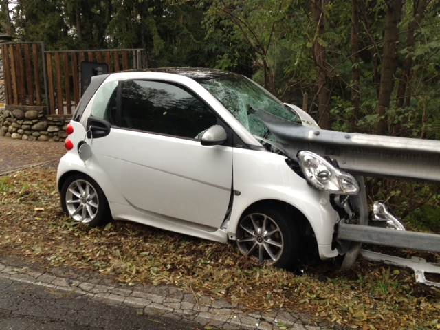 E la Smart finì incastrata nel guardrail