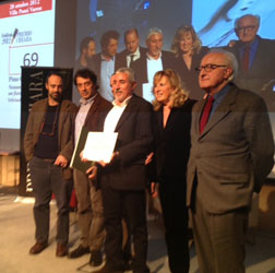 tra Pino Cacucci, Sandro Veronesi e Niccolò Ammaniti. Alla fine – ai punti, per riprendere l’immagine boxistica usata nel corso dell’intervista tra gli scrittori – il Premio 2012 è andato a Pino Cacucci, con il suo "Nessuno può portarti un fiore", storie dimenticate o perdenti recuperate dai cassetti chiusi della memoria e narrate – ça va sans dire – in forma di racconto. Lo scrittore giramondo ha chiuso con 69 voti, staccando Sandro Veronesi (45 voti con "Baci scagliati altrove") e Niccolò Ammaniti (29 voti con "Il momento è delicato"). Un esito arrivato al termine di un evento durato due ore tonde tonde, con al centro la piacevole intervista del professore di letteratura italiana Mauro Novelli ai tre scrittori finalisti. Per il resto, una spruzzata di