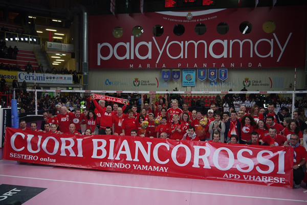 Quella di domenica 17 febbraio è stata una serata molto speciale per i ragazzi del Vharese: una corposa delegazione dell’associazione varesina, in prima fila nell’organizzazione di attività sportive per disabili, ha potuto assistere dalle tribune del PalaYamamay all’incontro del campionato di pallavolo femminile tra Unendo Yamamay Busto Arsizio e Chateau d’Ax Urbino. Grazie all’ospitalità della Futura Volley, oltre 40 atleti delle sezioni calcio, basket, nuoto e bocce hanno così potuto sostenere calorosamente le loro "beniamine", celebrate anche con il gigantesco striscione "Cuori Biancorossi", e sono stati alla fine premiati dalla vittoria di Caracuta e compagne.