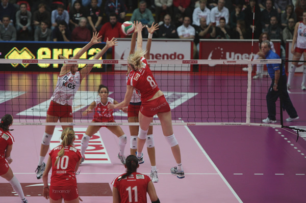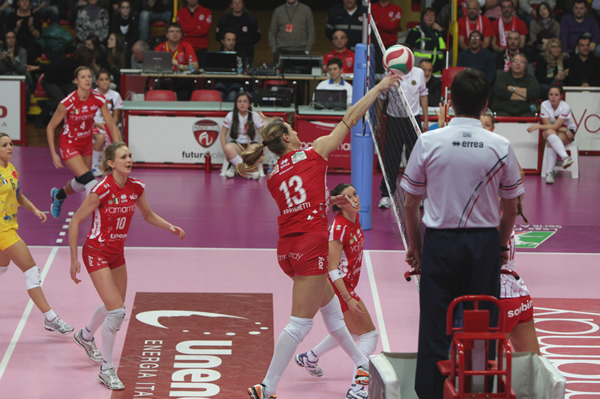 Diciamolo subito, a scanso di equivoci: il bicchiere della Unendo Yamamay è mezzo pieno. Certo, la squadra di Parisi, distratta dall’imminente e fondamentale trasferta europea a Baku, rischia fino all’ultimo di cadere nella trappola di Pesaro e chiude la pratica soltanto all’ultimo assalto di un combattuto tie break; il bilancio finale, però, parla di due pesantissimi punti messi in cassaforte mentre Piacenza non ne porta a casa nemmeno uno da Torino (Bergamo, l’altra diretta rivale, sarà in campo domani contro Urbino). E tutto sommato Busto si conferma capace di avere la meglio anche nelle partite brutte, sporche e cattive come quella di sabato sera: una gara intensissima e senza respiro, ricca di scambi lunghi e difese spettacolari ma anche di tantissimi errori. La chiave della gara potrebbe essere il terzo set, in cui le biancorosse riescono a rimontare dal 17-20 e imporsi 25-23; la medesima impresa però non si ripete nel secondo (ancora 17-20, poi un match point annullato) e così si decide tutto al quinto. Qui, oltre a una scatenata Bauer, a risultare decisive sono le due new entry di giornata: Brinker e Lombardo, che con il suo turno di servizio spezza l’equilibrio. La discontinuità regna sovrana, ma aggressività e morale ci sono: buon segnale in vista della gara con l’Azerrail, come lo è il fatto di essere riusciti a far rifiatare Faucette e Marcon. Certo, arrivare in Azerbaijan senza un’estenuante battaglia sulle spalle sarebbe stato meglio, ma a volte bisogna sapersi accontentare…