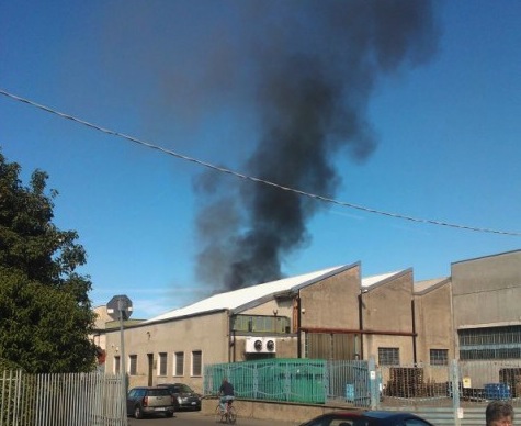 Il fuoco è divampato in via Buonarroti in un capannone, circondato da altre ditte. Sul posto numerose squadre dei vigili del fuoco
