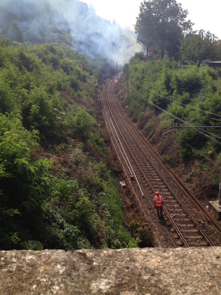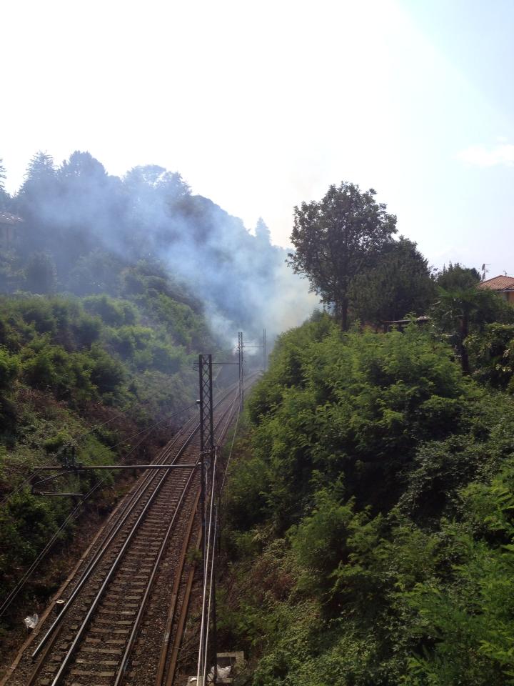 Incendio sulla massicciata a fianco della linea ferroviaria in prossimità della stazione di Porto Valtravaglia poco dopo le 15.20 di venerdì 23 agosto. Un’alta colonna di fumo si è alzata e i vigili del fuoco si sono portati sul posto con varie squadre. Un treno è fermo nella stazione di Porto Valtravaglia per consentire l’intervento dei Vigili del Fuoco in prossimità della sede ferroviaria.