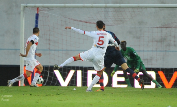 IL PRIMO TEMPO – La prima mossa di Sottili è il pressing: Pavoletti e Forte, supportati dalle ali, provano a contestare ogni azione ospite fin dall’area di rigore. Un tentativo che non produce particolari frutti ma che mostra quale faccia ha chiesto ai suoi l’allenatore biancorosso. Anche il Crotone conferma la fama di squadra brillante e aperta, sfiorando subito i legni con una bordata alta di Cataldi. La presenza di Pavoletti si sente: prima segna su assist di Calil ma il fuorigioco annulla l’azione, poi costringe Cremonesi al giallo, infine realizza l’1-0 su rigore. Penalty dubbio: Franco lancia Forte che crossa teso dal fondo; la palla sfila tra alcuni giocatori e l’arbitro vede una mano di Abruzzese. Dal dischetto il Pavo è preciso (foto di S. Raso) e mette a fil di palo l’1-0.