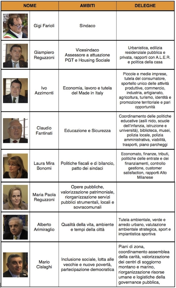 Se i nomi e gli assessorati sono stati svelati con il consiglio comunale di giovedì 9 gennaio, solo nella mattinata del giorno successivo sono state pubblicate nel dettaglio gli ambiti di competenza di ciascun assessore. Rispetto alla precedente giunta -nata dal rimpasto del settembre 2012– le differenze più sostanziali riguardano Ivo Azzimonti che perde i servizi sociali. L’assessorato di via Roma passa a Mario Cislaghi che affiancherà le altre due nuove entrate nella giunta: Paola Reguzzoni e Alberto Armiraglio. Ecco, nei dettagli, tutte le informazioni sulla nuova amministrazione comunale di Busto Arsizio.