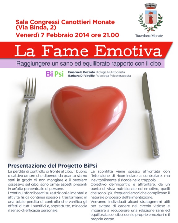 La "fame emotiva" sarà il tema al centro dell’incontro in programma venerdì 7 febbraio alle ore 21 alla Sala Congressi Canottieri di Monate.