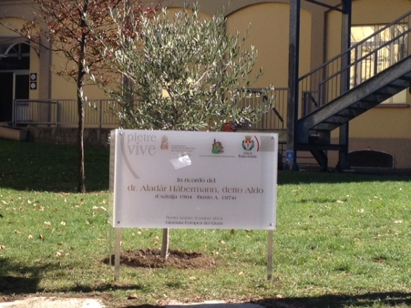 La città di Busto Arsizio ha dedicato un ulivo e una targa alla memoria in onore di Aladar Habermann, medico ungherese, che visse a Busto Arsizio, ebreo convertito, che durante la Resistenza mise in salvo decine di ebrei e perseguitati politici. Il ricordo è avvenuto questa mattina (giovedì) nell’aiuola dell’ospedale dove il dottor Habermann dal 1933 al 1939 prestò servizio volontario occupandosi soprattutto dei più poveri, un’attenzione ai più bisognosi che ha caratterizzato tutta la sua vita. A Busto Arsizio ci arrivò dopo un breve periodo in Ungheria, cacciato dal regime del dittatore filonazista Horty, e qui cominciò ad esercitare la sua professione convinto che Mussolini avesse mantenuto fede alla promessa di non perseguitare gli ebrei. A partire dal ’38, con l’entrata in vigore delle leggi razziali, cominciarono i problemi anche a Busto. Estromesso dall’ospedale, nonostante la conversione al cattolicesimo e all’unione matrimoniale con Rosa De Molli, dovette ingaggiare una battaglia legale col Ministero della razza per poter rimanere in Italia. La sfida, ingaggiata anche dalla moglie, venne vinta nel ’41 quando fu riabilitato con pieni diritti civili mentre, grazie ad una rete clandestina, riuscì a mettere in salvo numerosi ebrei dalla deportazione. Il dottor Habermann continuò a cercare il figlio avuto con la prima moglie, Tamàs, ma scoprì che fu sterminato insieme a tutto il resto della famiglia (tranne la sorella di Aladar, Irene, unica sopravvissuta, ndr), nonostante questo continuò a sperare almeno fino agli anni ’50 di poterlo ritrovare in Russia. A Busto continuò a lavorare ed ebbe una seconda figlia con la seconda moglie, Anna Maria anche lei presente questa mattina alla cerimonia. Morì nel 1974. Una storia importante quella del dottor Habermann che ora trova un giusto riconoscimento proprio davanti a quell’edificio che lo ha visto salvare la vita a molti bustocchi.