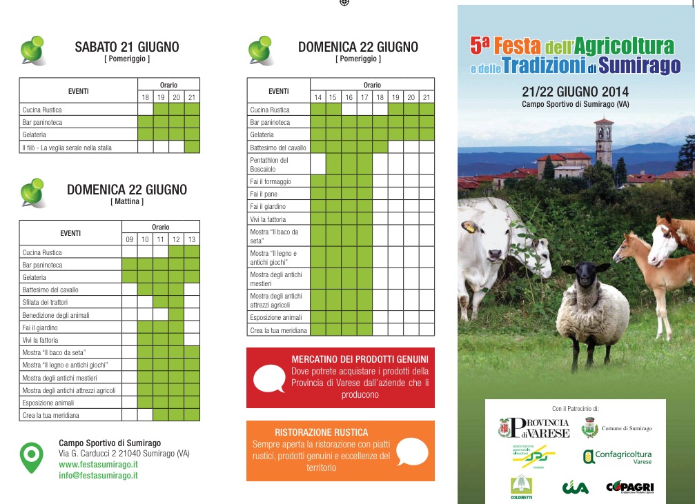 Mercatini di prodotti tipici e buona cucina saranno i protagonisti del weekend a Sumirago. Sabato 21 e domenica 22 giugno torna la Festa dell’agricoltura e delle tradizioni giunta ormai alla sua quinta edizione.