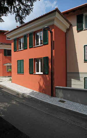L’edificio preesistente, una vecchia casa a corte, in effetti non c’è più. Il nuovo è stato ricostruito seguendone fedelmente le tracce, dalla tipologia edificatoria fino al recupero di antiche finiture e colori. L’impressione è quella di una solida costruzione d’epoca, ma qui tutto è nuovo, progettato e realizzato con tecniche e materiali innovativi e con accorgimenti costruttivi molto avanzati, che garantiscono risparmio, sicurezza e prestazioni eccellenti.