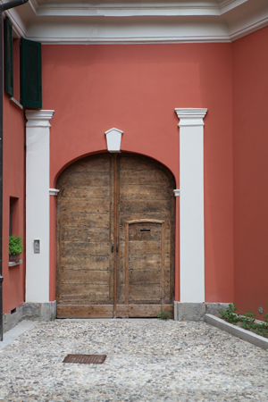 Anche all’esterno, piano piano ci accorgiamo come gli architetti siano stati rispettosi della storia di Azzate, ripristinando antiche finiture e materiali; come le greche pittoriche di coronazione del tetto, le modanature scavate sullo zoccolo della facciata, i balconi aggettanti in pietra massello del Verbano, oppure il grandioso restauro del portale in legno di quercia del Settecento cosi come l’androne storico. Appena fuori, l’Hotel Mai Intees o il belvedere sul lago di Varese completano la scenografia.