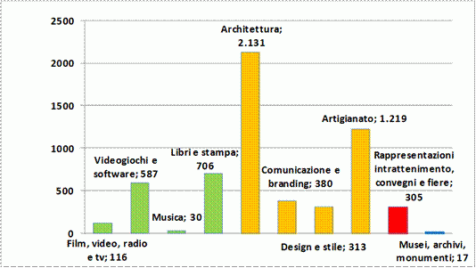 Resta da precisare che nel rapporto di Unioncamere, da cui trae origine anche l’analisi dell’Ufficio Studi della Camera di Commercio di Varese, sono state prese in considerazione imprese appartenenti a quattro ambiti. Il primo è quello delle industrie culturali in senso stretto, comprendenti il cinema, la televisione, l’editoria e l’area musicale. Il secondo è quello delle industrie creative quali l’architettura, l’alimentazione, la comunicazione oltre alle attività collegate al made in Italy che puntano sul design e lo stile e vengono svolte anche in forma artigianale, come nel caso dell’artigianato artistico. Il terzo ambito è invece connesso alle attività, svolte sempre in forma d’impresa, aventi a che fare con la conservazione, la fruizione e la messa a valore del patrimonio storico-artistico-architettonico. Infine, sono stati presi in considerazione il performing arts e le arti visive. Proprio in riferimento a questa classificazione, emerge una specializzazione varesina nelle industrie creative, grazie soprattutto al contributo degli studi di architettura e delle imprese dell’artigianato artistico locale.
