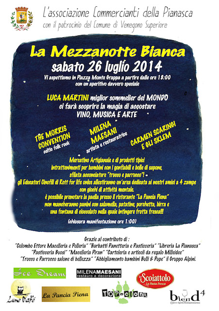 Manca meno di una settimana, ed è quasi tutto pronto: sabato 26 luglio torna la Mezzanotte Bianca a Venegono Superiore. Trasformeremo la Pianasca in un vortice di musica, vino e divertimento dalle ore 18:00.