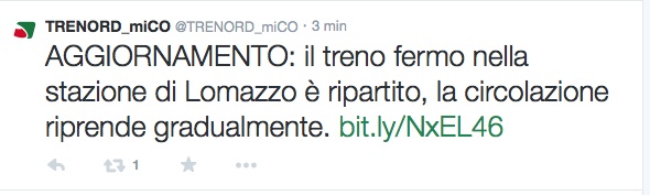 Intorno alle 9.45 un altro tweet di Trenord annuncia che la circolazione riprende lentamente: "il treno fermo nella stazione di Lomazzo è ripartito, la circolazione riprende gradualmente".