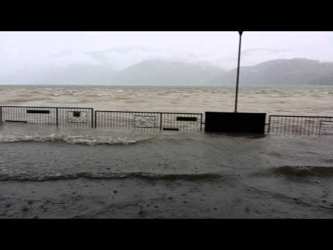 Anche a Laveno Mombello la situazione comincia a farsi seria: l’acqua del Verbano è sulla sede stradale della provinciale: la polizia locale ha deviato il traffico sulla via Labiena.