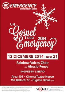 L’appuntamento, giunto ormai alla terza edizione ed organizzato dal Gruppo Emergency di Busto Arsizio, è per venerdì 12 dicembre, alle 21, a Olgiate Olona (VA), presso Area 101 – Teatro Nuovo (via Bellotti, 22). L’ingresso alla serata è libero.