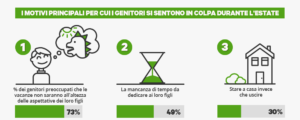 Alle pressioni causate dai social media, si aggiungono poi i sensi di colpa dovuti dal poco tempo che i genitori hanno a disposizione per stare con i propri figli (42%), quelli causati dal tempo che i bambini passano al chiuso (28%) o davanti alla TV (24%), e quelli causati dalla mancanza di attività da fargli fare (18%).