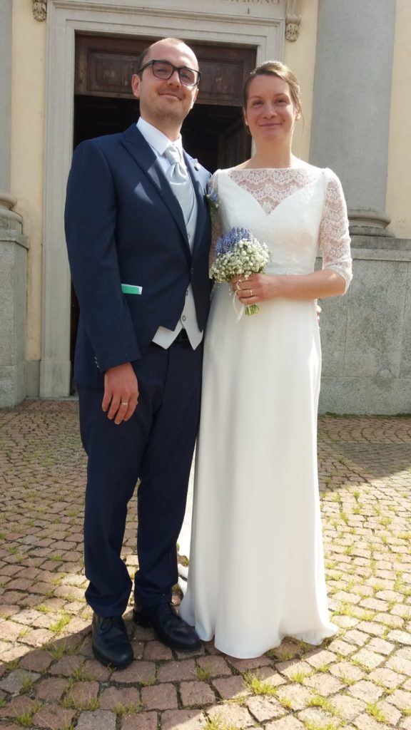 «Alla cerimonia c’erano i nostri genitori, i fratelli, i quattro testimoni. Quattordici persone in tutto: la chiesa è abbastanza grande, ognuno era seduto su una panca e vicini, sull’altare c’eravamo solo io e Giuliano, ma già viviamo insieme quindi non c’era pericolo di contagio. Alla fine della cerimonia ciascuno è andato a casa proprio: non abbiamo, ovviamente, fatto festa».