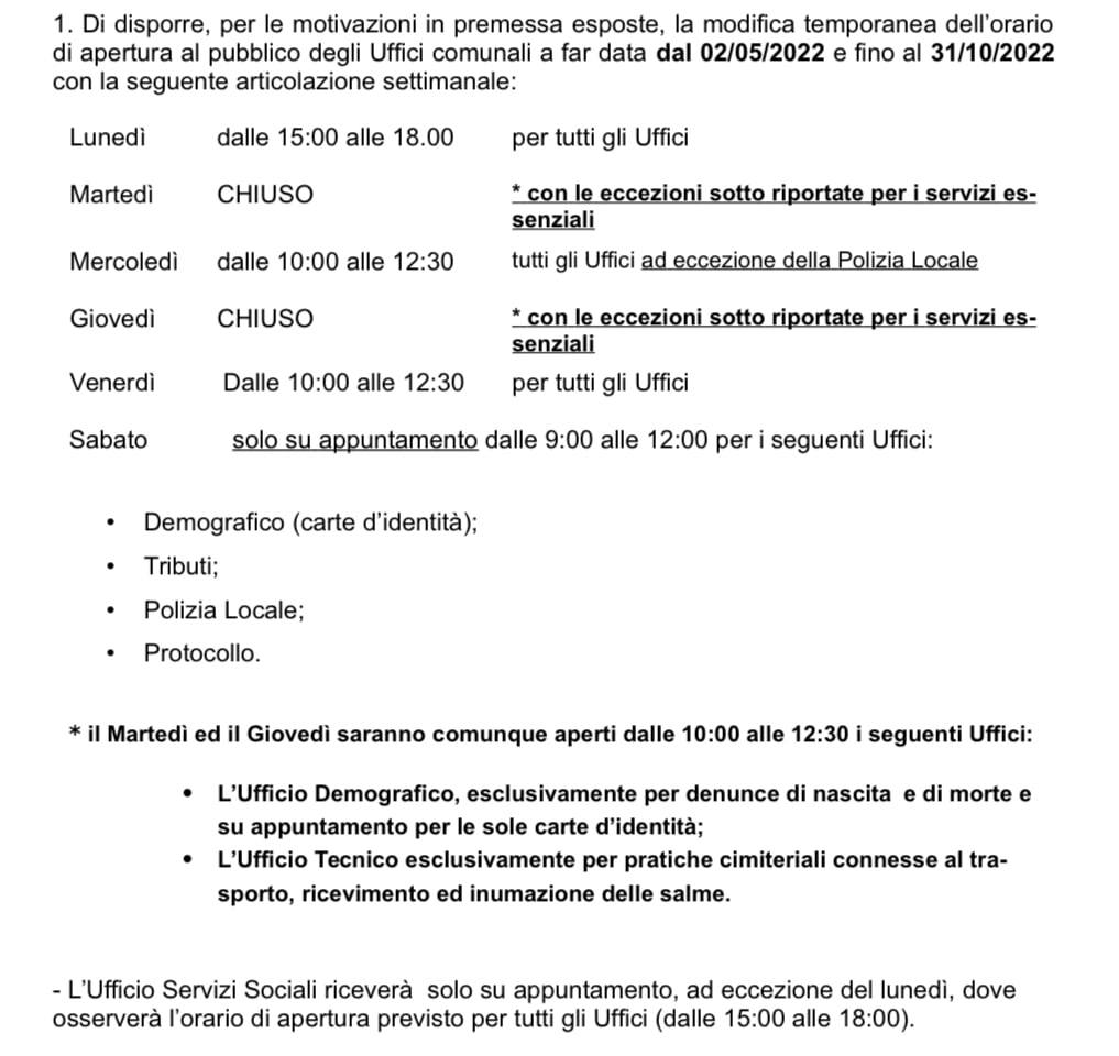 Questa mattina il sindaco Marco Cavallin ha firmato il documento che li modifica: «Un primo ma significativo passo verso il ritorno alla normalità, dopo le severe limitazioni all’accessibilità dovute alla pandemia. Conto in tempi ragionevoli di poter ampliare ulteriormente le aperture degli uffici. Consiglio anche di consultare frequentemente il sito ufficiale del Comune, per essere informati tempestivamente delle novità».