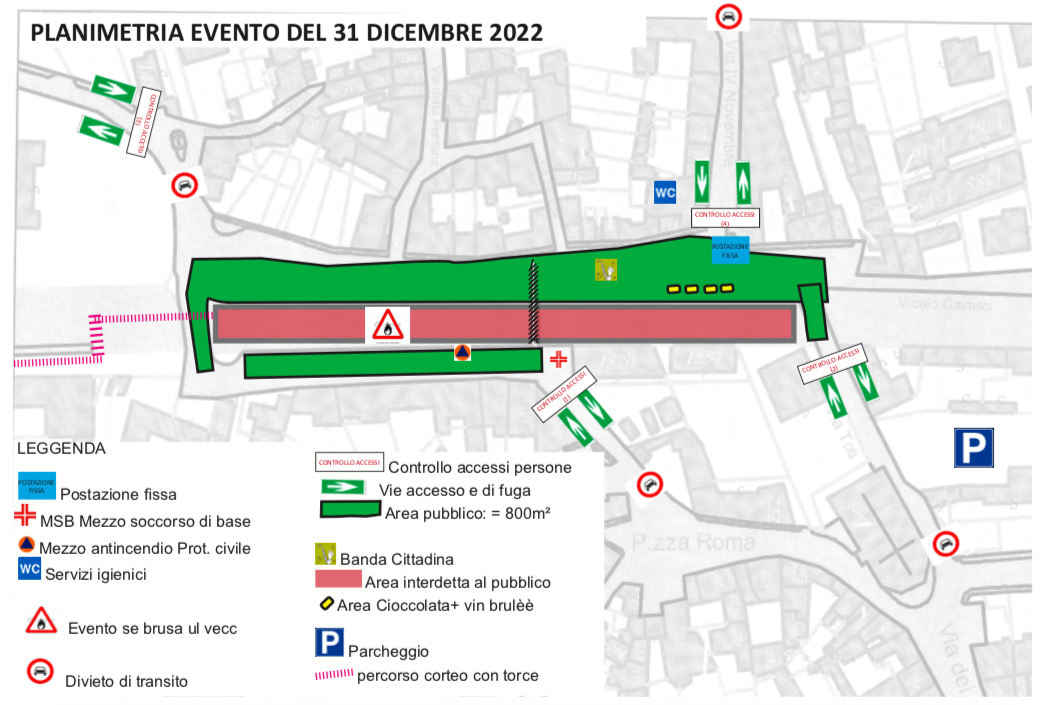 I ragazzi si troveranno alle ore 17.00 presso il parcheggio delle scuole medie in via Ronchi e da lì proseguiranno per via Filzi. Percorrendo la stradina lungo il San Giovanni scenderanno nel torrente per portare il fuoco al “vécc”.